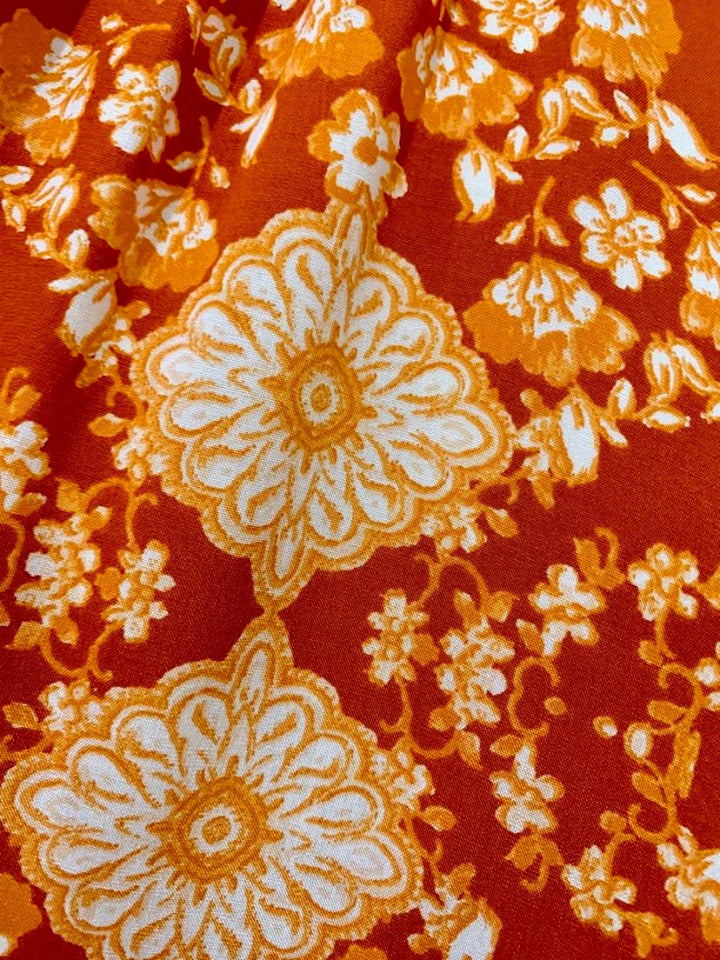 The 'Jessie' maxi dress features a vibrant burnt orange floral print, adjustable shoestring straps, a comfy shirred bodice and floaty, tiered maxi length skirt.