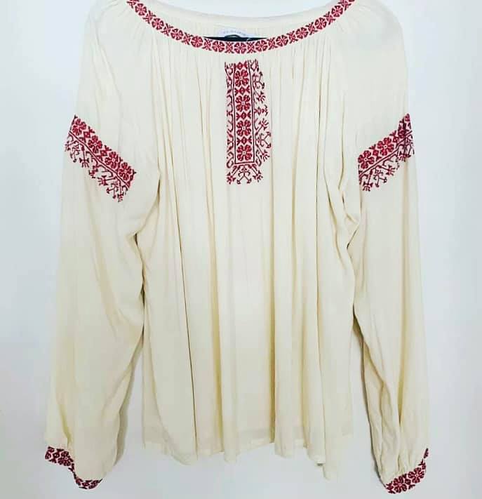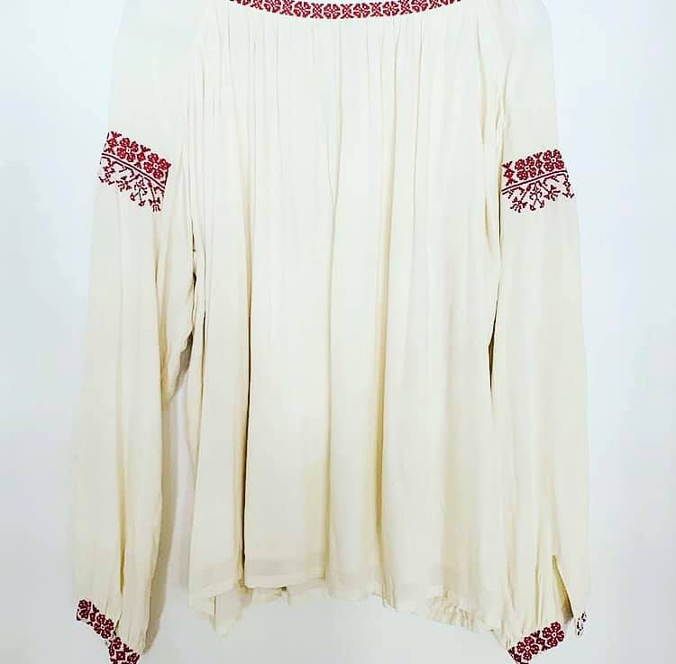This pretty designer top from 'Flannel' features a beautifully embroidered bodice, neckline and long sleeves in fully lined, soft and breathable rayon.