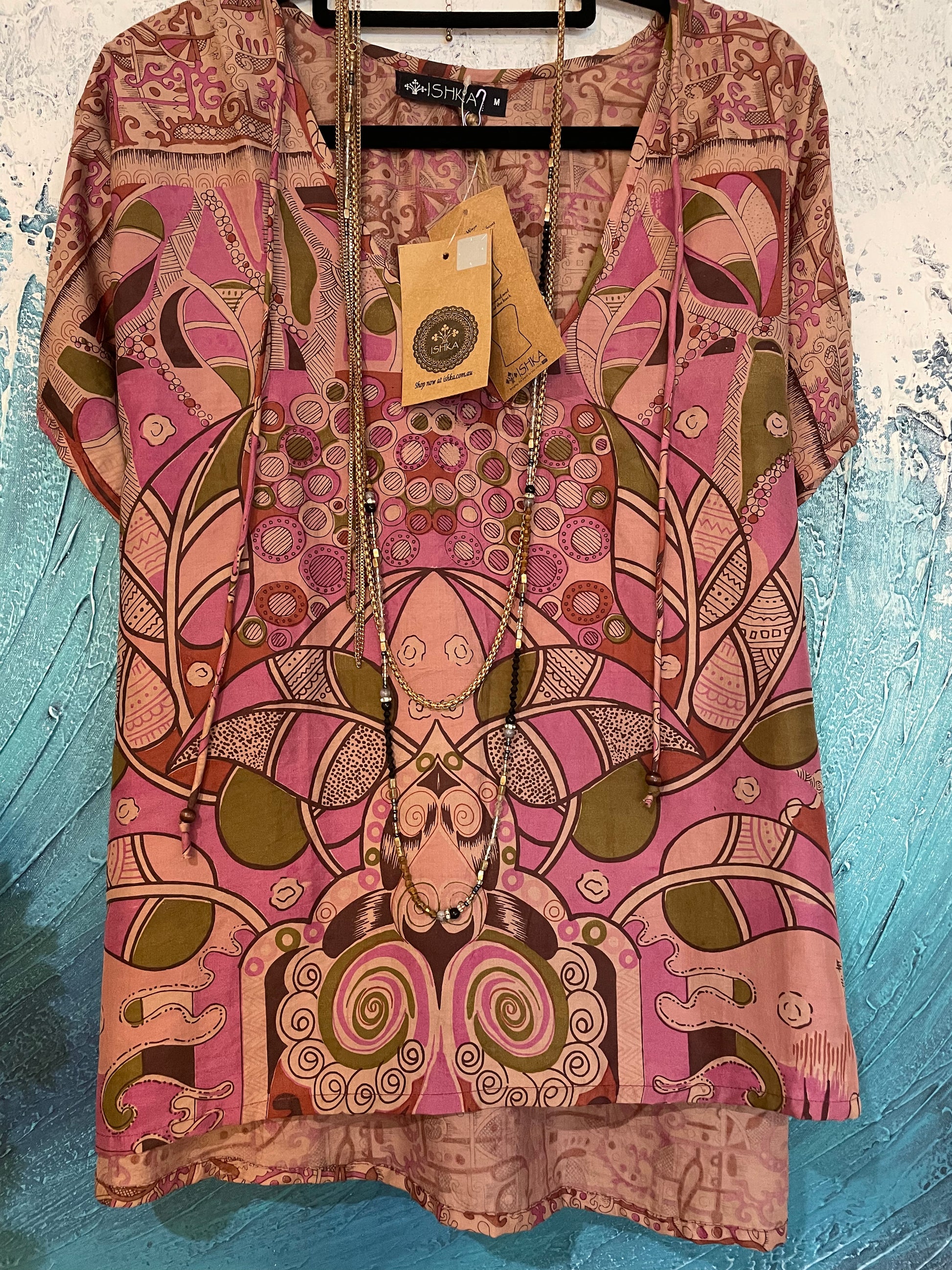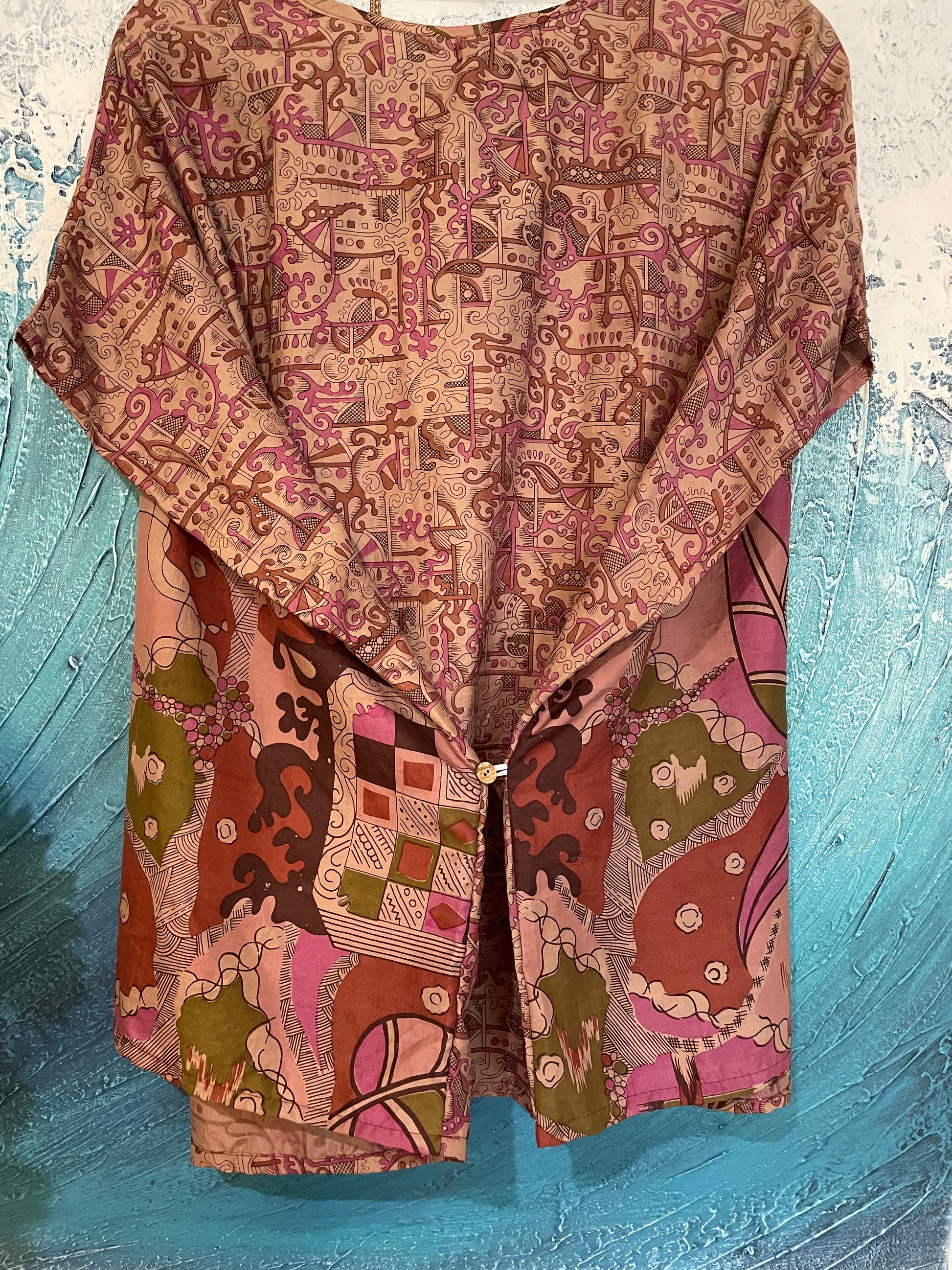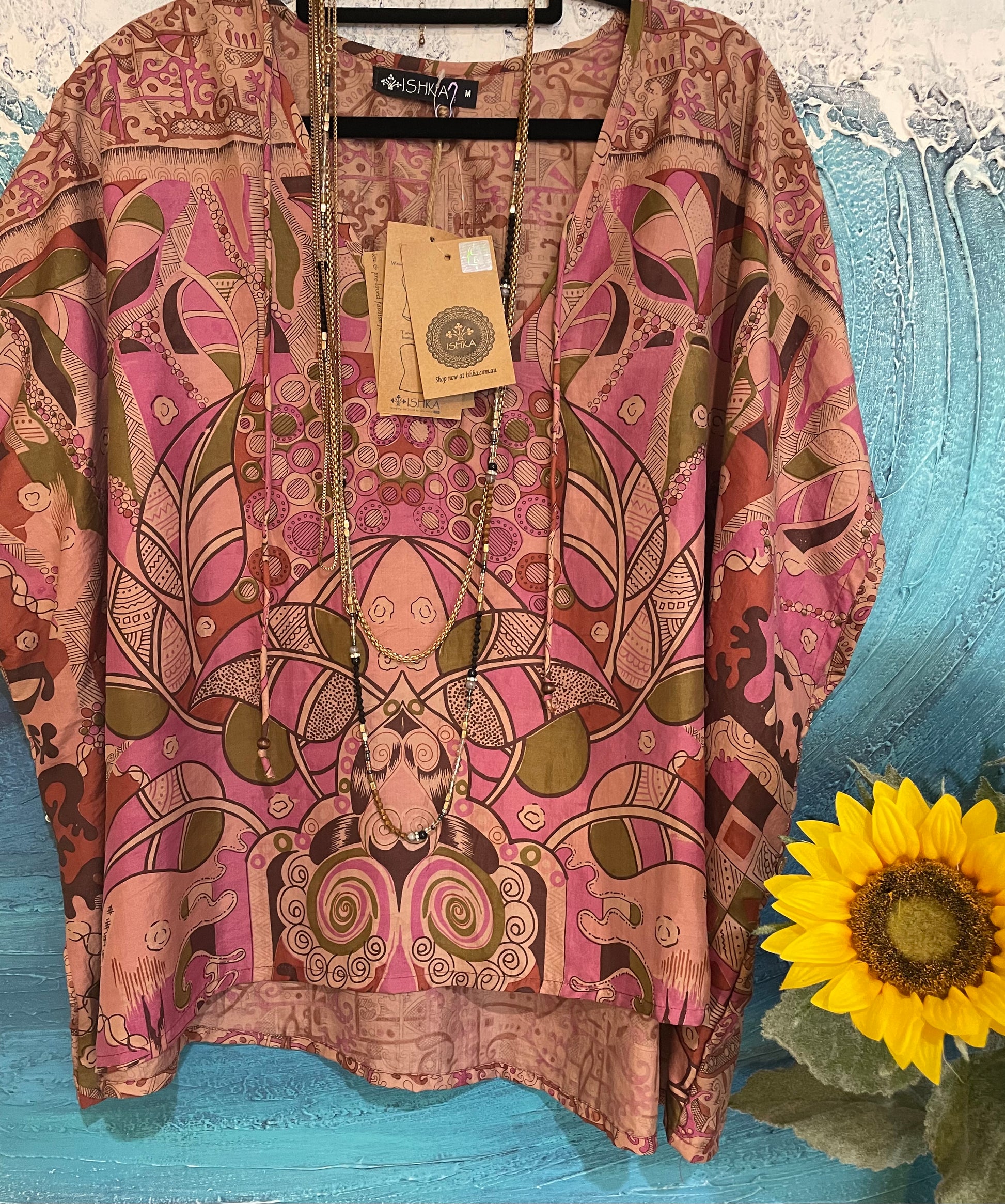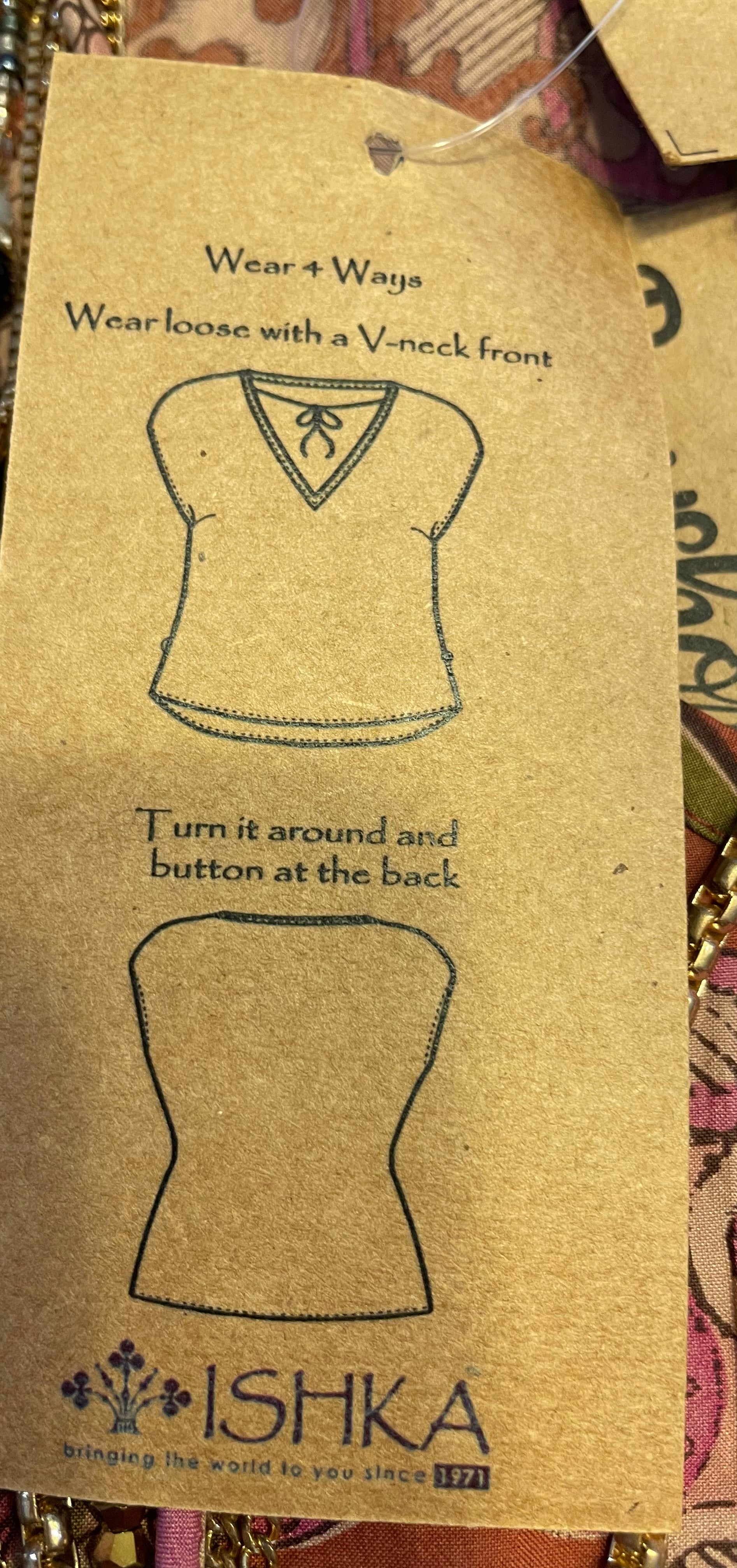 Beautiful hand dyed Silk Top from 'Ishka.' Silky soft and so versatile. It’s like four tops in one as it can be worn four different ways!