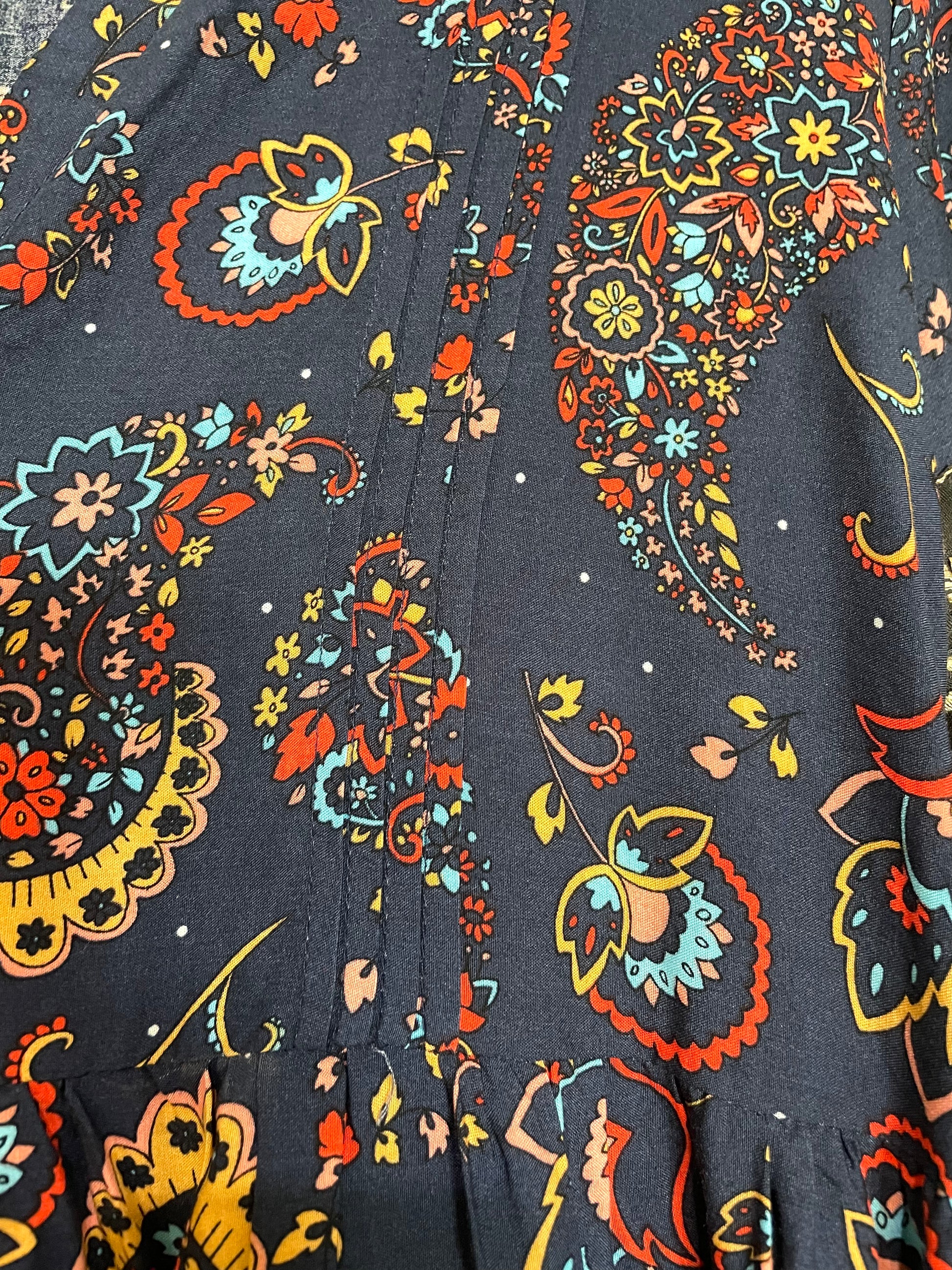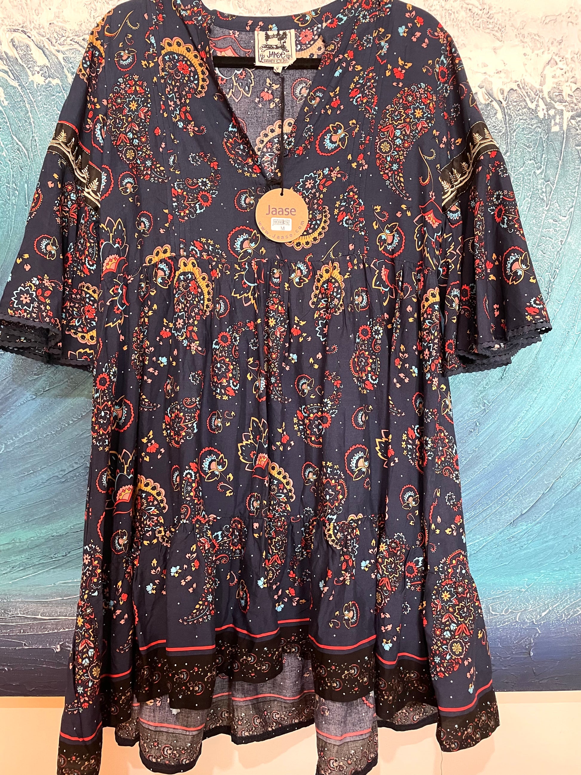 This gorgeous Jaase mini features a beautiful turquoise, red, yellow and dusty pink print.