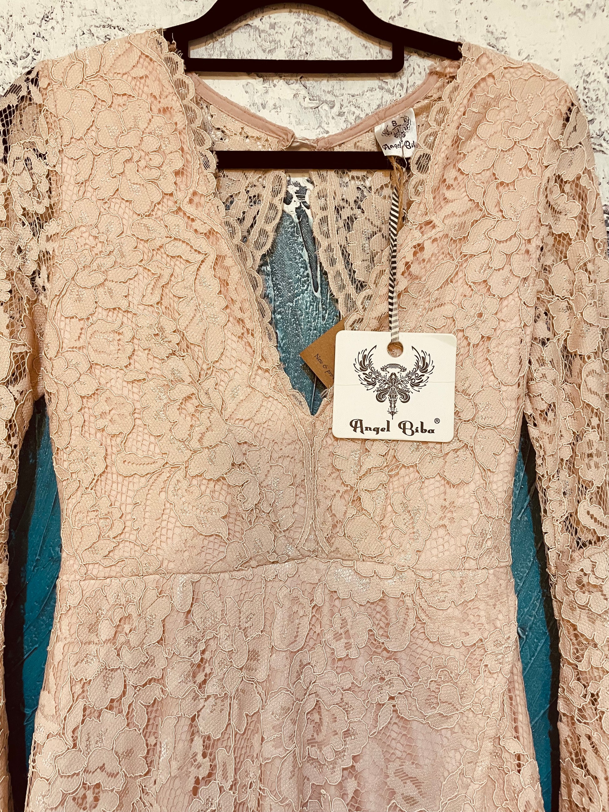 Nude Lace Maxi Dress from Angel Biba Size 8